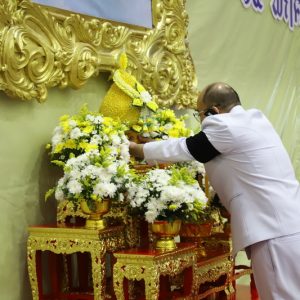 วันที่ 14 พฤศจิกายน 2568 เวลา 09.00 น. นายณัชวันก์ อัลภาชน์ เตชะเสน รองผู้ว่าราชการจังหวัดสมุทรปราการ เป็นประธานประกอบพิธีถวายราชสักการะวางพานพุ่มดอกไม้สดเบื้องหน้าพระบรมฉายาลักษณ์ พระบาทสมเด็จพระบรมชนกาธิเบศร มหาภูมิพลอดุลยเดชมหาราช บรมนาถบพิตร เนื่องใน“วันพระบิดาแห่งฝนหลวง” ประจำปี 2568 ณ ห้องประชุม อาคารศาลาประชาคมจังหวัดสมุทรปราการ เพื่อแสดงความจงรักภักดี และน้อมรำลึกในพระมหากรุณาธิคุณของพระบาทสมเด็จพระบรมชนกาธิเบศร มหาภูมิพลอดุลยเดชมหาราช บรมนาถบพิตร ที่ทรงก่อให้เกิดเทคโนโลยีฝนหลวงในการบรรเทาความทุกข์ยากแก่พสกนิกรให้รอดพ้นความเดือดร้อน และความเสียหายเนื่องจากสภาวะภัยแล้ง โดยก่อนเริ่มประกอบพิธี รองผู้ว่าราชการจังหวัดสมุทรปราการ ได้นำผู้ร่วมกิจกรรมยืนสงบนิ่ง เป็นเวลา 93 วินาที แสดงความอาลัย สมเด็จพระนางเจ้าสิริกิติ์พระบรมราชินีนาถ พระบรมราชชนนีพันปีหลวง พระผู้เสด็จสู่สวรรคาลัย