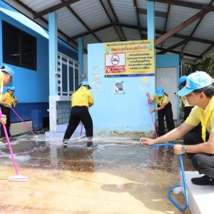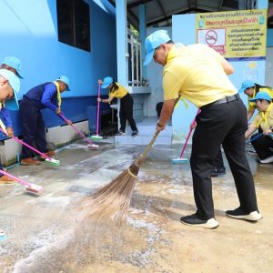 จังหวัดสมุทรปราการ จัดกิจกรรมจิตอาสาพัฒนาเนื่องในวันคล้ายวันพระบรมราชสมภพพระบาทสมเด็จพระปรเมนทรมหามงกุฎ พระจอมเกล้าเจ้าอยู่หัว ปรับปรุงภูมิทัศน์บริเวณโรงเรียนชุมชนวัดสาขลา