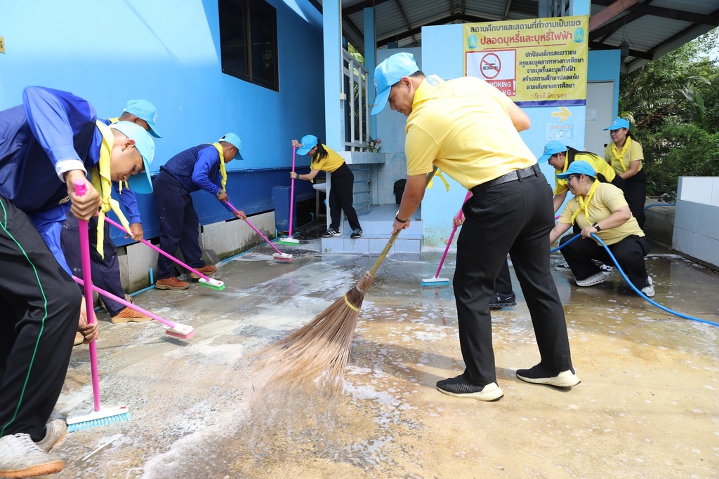 จังหวัดสมุทรปราการ จัดกิจกรรมจิตอาสาพัฒนาเนื่องในวันคล้ายวันพระบรมราชสมภพพระบาทสมเด็จพระปรเมนทรมหามงกุฎ พระจอมเกล้าเจ้าอยู่หัว ปรับปรุงภูมิทัศน์บริเวณโรงเรียนชุมชนวัดสาขลา