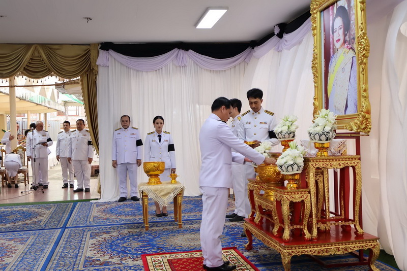 จังหวัดสมุทรปราการ จัดพิธีถวายน้ำสรงพระบรมศพ เบื้องหน้าพระฉายาลักษณ์สมเด็จพระนางเจ้าสิริกิติ์ พระบรมราชินีนาถ พระบรมราชชนนีพันปีหลวง
