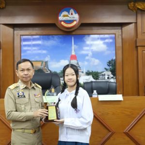 ก่อนเข้าวาระการประชุมฯ ผู้ว่าราชการจังหวัดสมุทรปราการ มอบโล่รางวัลเชิดชูเกียรติและเกียรติบัตร ให้เด็กหญิงชนัญชิดา อาษาวัง ในสาขาเด็กและเยาวชนดีเด่นด้านดนตรี โรงเรียนเซนต์โยเซฟทิพวัล ตามโครงการ “เด็กไทยหัวใจสร้างสรรค์” จัดโดยชมรมส่งเสริมวัฒนธรรมเด็กและเยาวชนต้นแบบ (สำนักงานศึกษาธิการจังหวัดสมุทรปราการ)