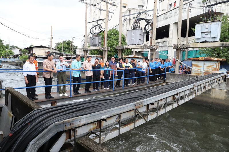 ผู้ว่าราชการจังหวัดสมุทรปราการ ติดตามการพร่องน้ำในคลองสำโรง เพื่อป้องกันและแก้ไขปัญหาน้ำท่วมในพื้นที่