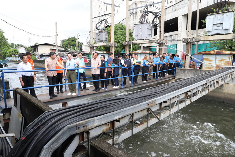 ผู้ว่าราชการจังหวัดสมุทรปราการ ติดตามการพร่องน้ำในคลองสำโรง เพื่อป้องกันและแก้ไขปัญหาน้ำท่วมในพื้นที่