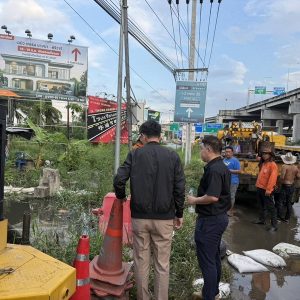 ผู้ว่าราชการจังหวัดสมุทรปราการ พร้อมด้วยหัวหน้าส่วนราชการ ลงพื้นที่ติดตามสถานการณ์น้ำท่วมขัง และติดตามการระบายน้ำในพื้นที่
