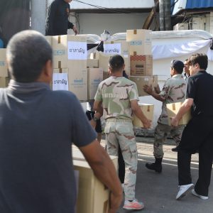 ทั้งนี้ ยังคงมีหน่วยงานราชการ ภาคเอกชน ผู้มีจิตศรัทธาบริจาคเงินและสิ่งของ อาทิ น้ำดื่ม บะหมี่กึ่งสำเร็จรูป ปลากระป๋อง อาหารพร้อมรับประทาน นม นมผงสำหรับเด็ก แพมเพอร์ส สำหรับเด็กและผู้ใหญ่ ยารักษาโรค ผ่านสำนักงานเหล่ากาชาดจังหวัดสมุทรปราการอย่างต่อเนื่อง หลังจากเมื่อวานนี้ (27 พ.ย.68) สำนักงานเหล่ากาชาดจังหวัดสมุทรปราการ ได้ตั้งจุดรับบริจาคบริเวณสำนักงานเหล่ากาชาดจังหวัดสมุทรปราการ โดยมี ข้าราชการ เจ้าหน้าที่ จากหน่วยงานในจังหวัดสมุทรปราการ สมาชิกเหล่ากาชาดจังหวัดสมุทรปราการ สมาชิก อพปร.และจิตอาสา ร่วมกันบรรจุสิ่งของที่ได้รับบริจาคลงในถุงยังชีพ ก่อนจะนำไปมอบให้หน่วยงานในพื้นที่ ส่งต่อให้กับผู้ประสบอุทกภัย เพื่อเป็นการบรรเทาความเดือดร้อนในเบื้องต้นต่อไป