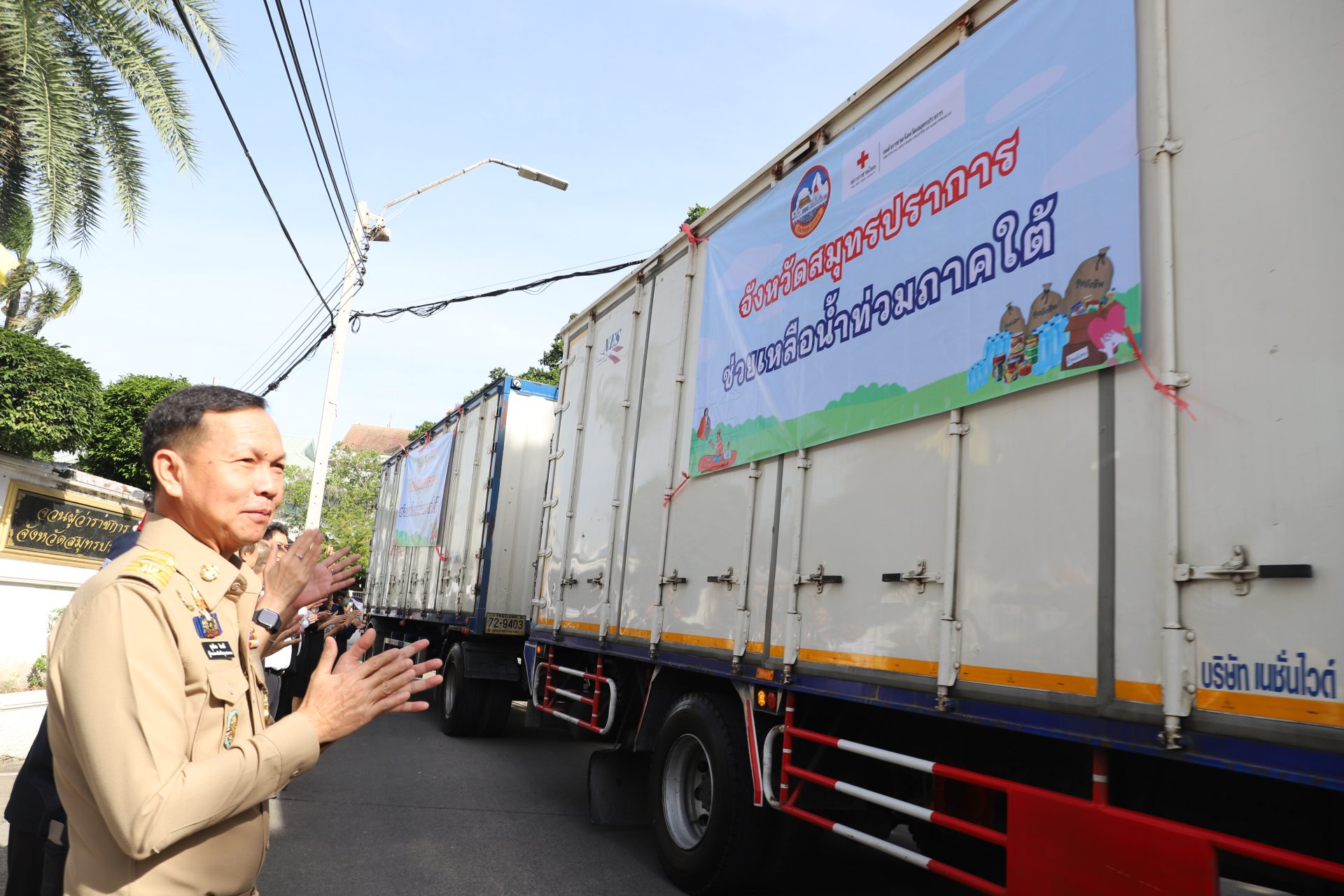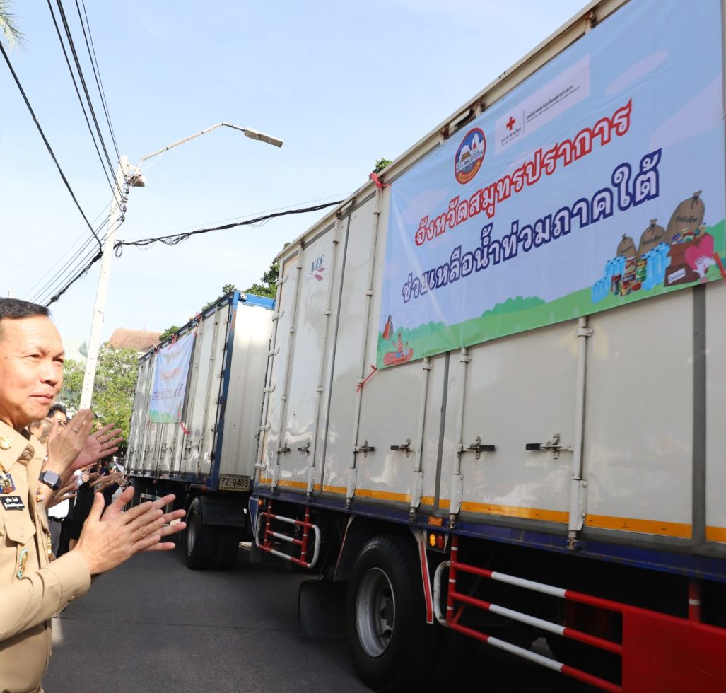 ผู้ว่าราชการจังหวัดสมุทรปราการส่งขบวนรถธารน้ำใจชาวสมุทรปราการ สู่ผู้ประสบอุทกภัยทางภาคใต้