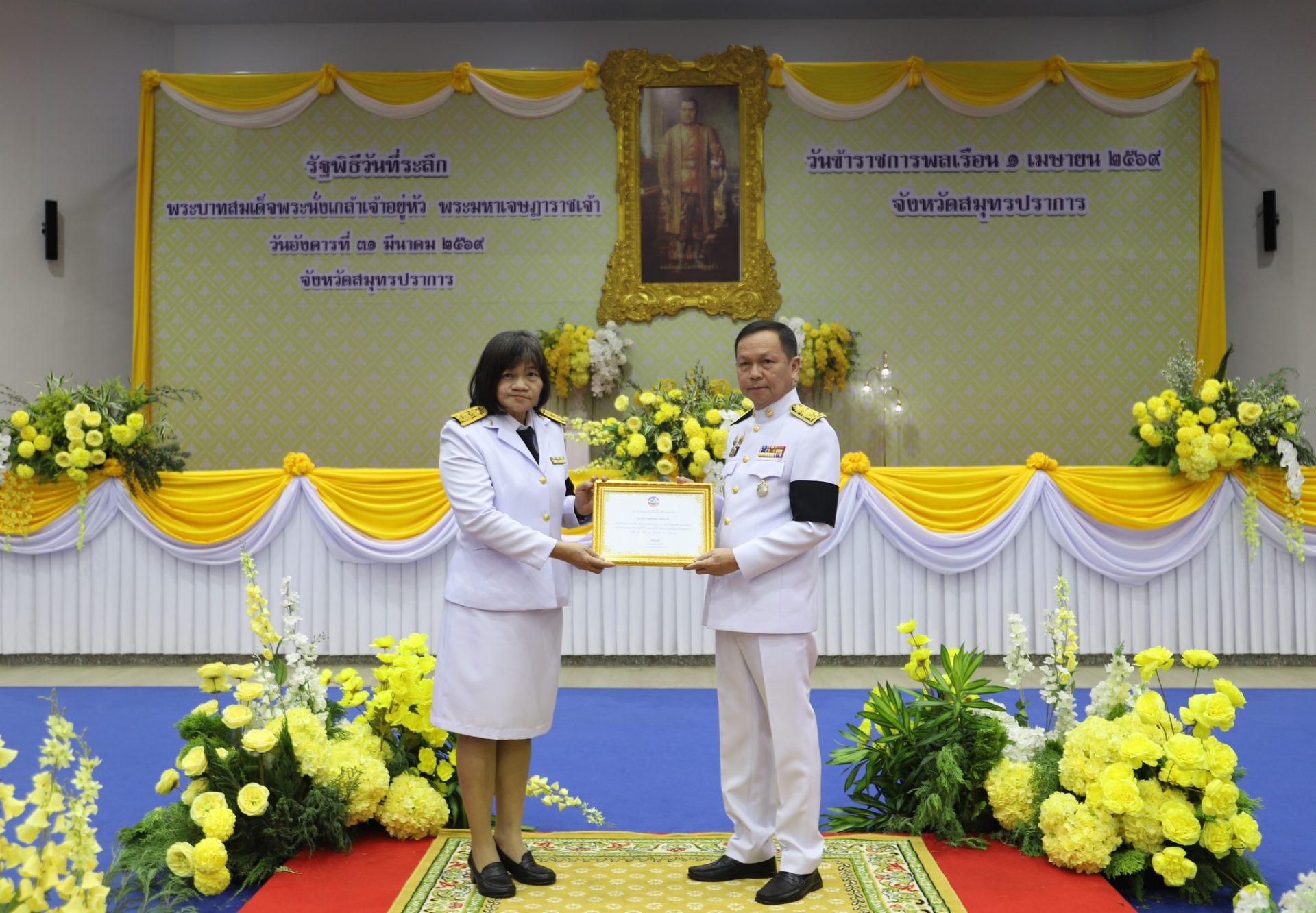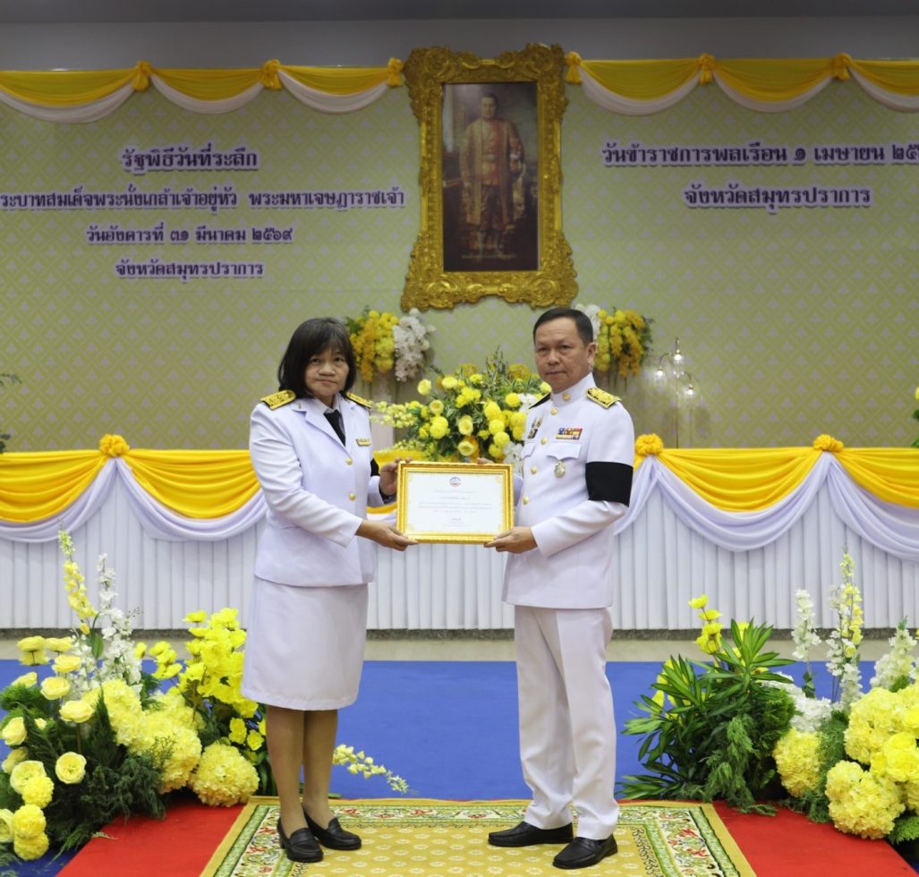 ผู้ว่าราชการจังหวัดสมุทรปราการ มอบเกียรติบัตรยกย่องเชิดชูเกียรติข้าราชการพลเรือนดีเด่นของส่วนราชการ ประจำปี พ.ศ. 2568 เนื่องในวันข้าราชการพลเรือน ประจำปี 2569
