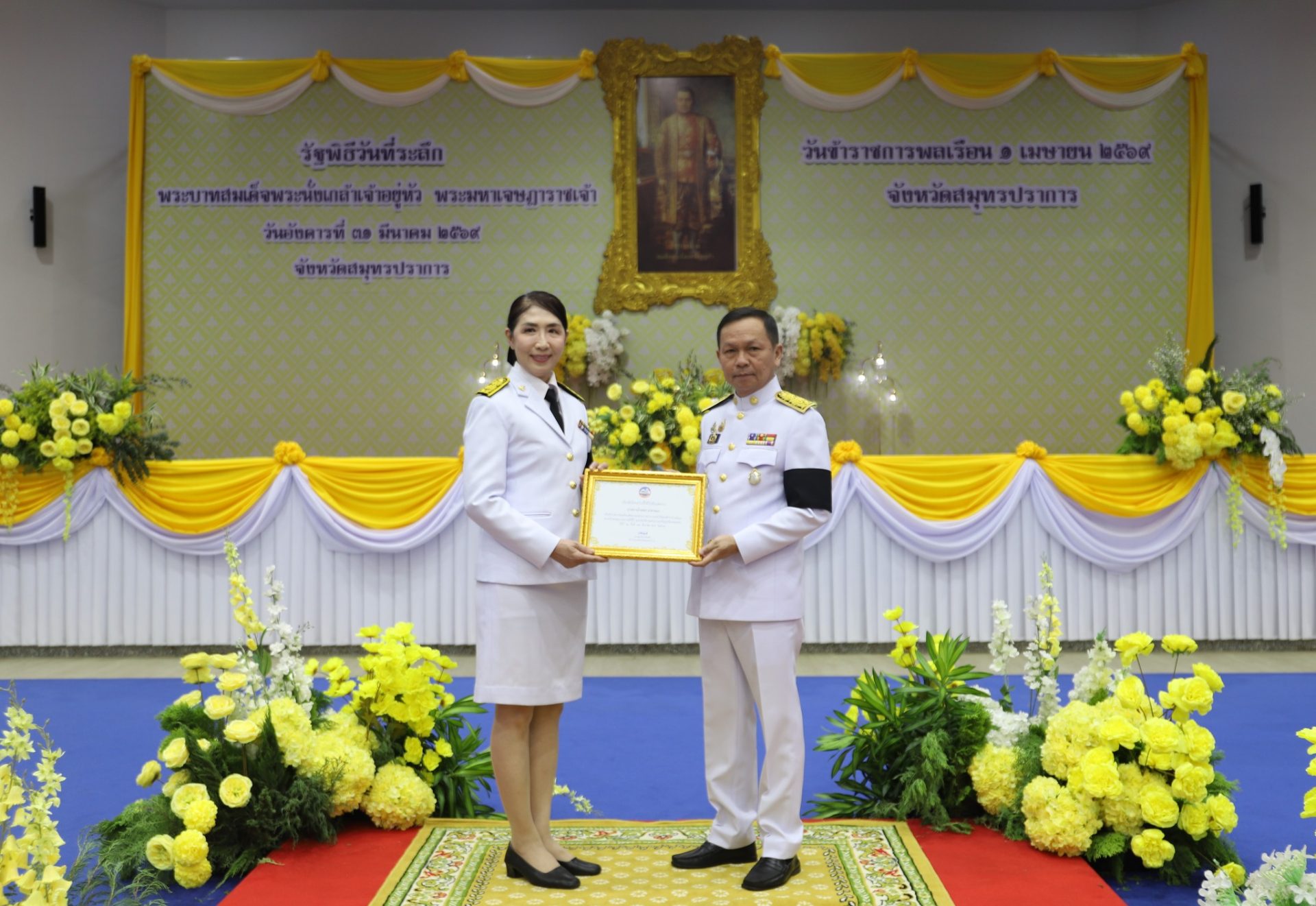 ผู้ว่าราชการจังหวัดสมุทรปราการ มอบเกียรติบัตรยกย่องเชิดชูเกียรติข้าราชการพลเรือนดีเด่นของส่วนราชการ ประจำปี พ.ศ. 2568 เนื่องในวันข้าราชการพลเรือน ประจำปี 2569