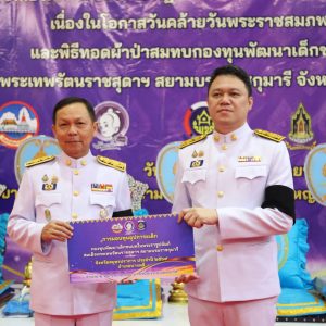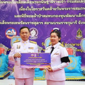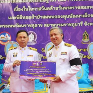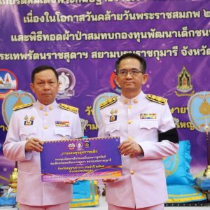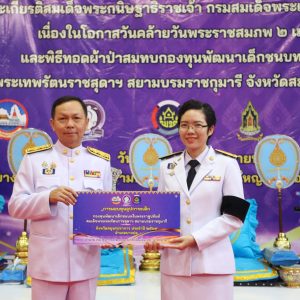สำนักงานพัฒนาชุมชนจังหวัดสมุทรปราการ จัดพิธีทอดผ้าป่าสมทบกองทุนพัฒนาเด็กชนบท ในพระราชูปถัมภ์สมเด็จพระเทพรัตนราชสุดาฯ สยามบรมราชกุมารี จังหวัดสมุทรปราการ เพื่อจัดหาทุนในการช่วยเหลือเด็กด้อยโอกาส