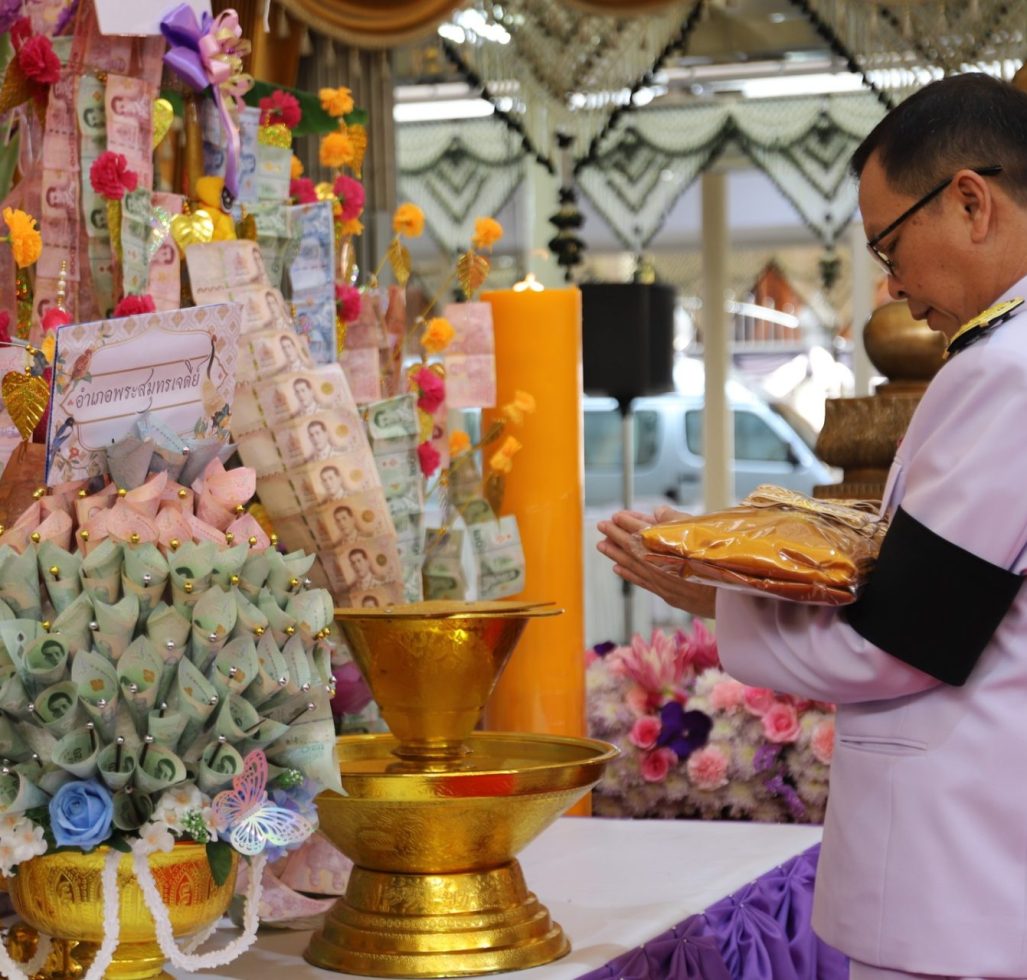 สำนักงานพัฒนาชุมชนจังหวัดสมุทรปราการ จัดพิธีทอดผ้าป่าสมทบกองทุนพัฒนาเด็กชนบท ในพระราชูปถัมภ์สมเด็จพระเทพรัตนราชสุดาฯ สยามบรมราชกุมารี จังหวัดสมุทรปราการ เพื่อจัดหาทุนในการช่วยเหลือเด็กด้อยโอกาส