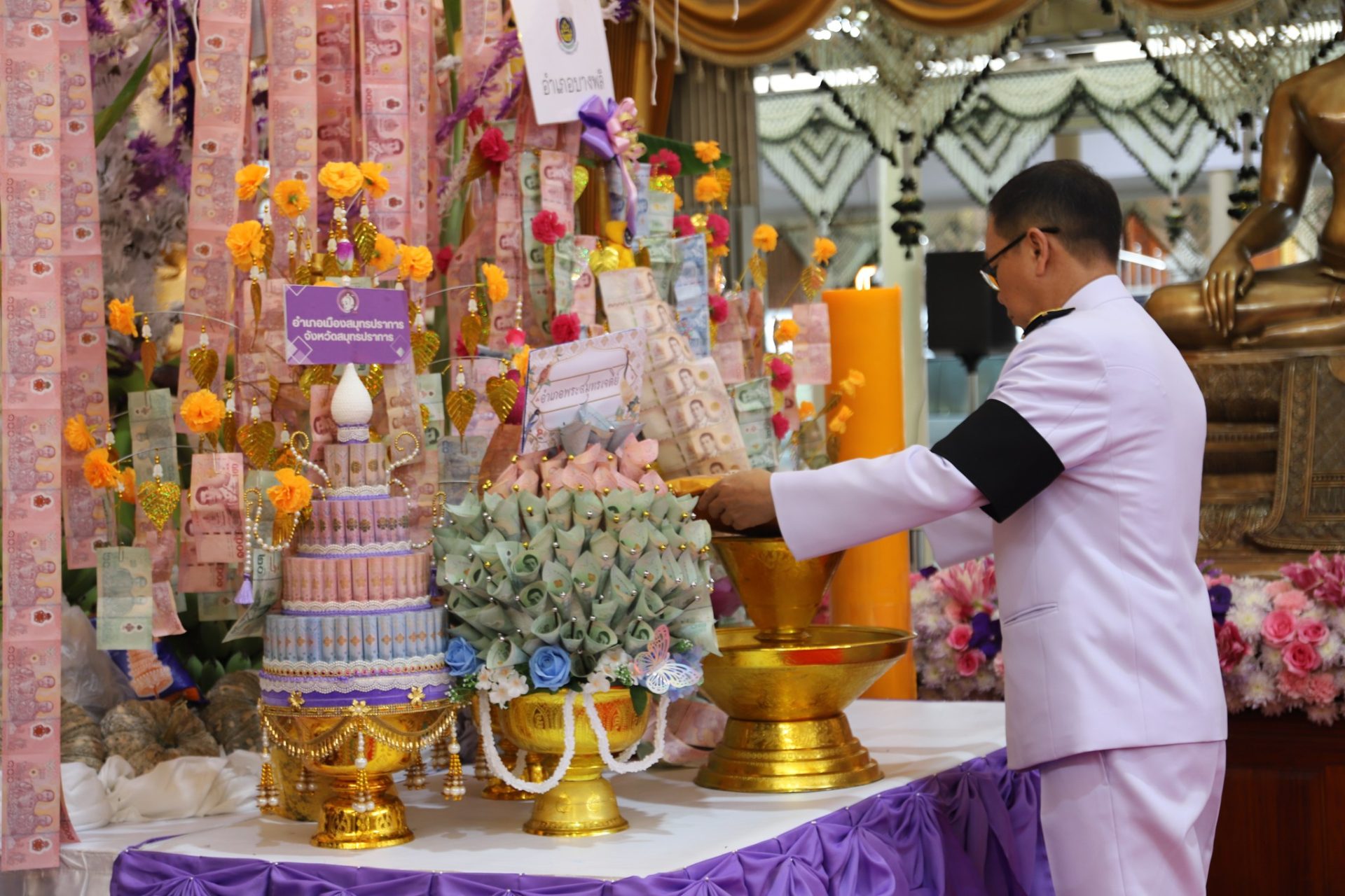 สำนักงานพัฒนาชุมชนจังหวัดสมุทรปราการ จัดพิธีทอดผ้าป่าสมทบกองทุนพัฒนาเด็กชนบท ในพระราชูปถัมภ์สมเด็จพระเทพรัตนราชสุดาฯ สยามบรมราชกุมารี จังหวัดสมุทรปราการ เพื่อจัดหาทุนในการช่วยเหลือเด็กด้อยโอกาส
