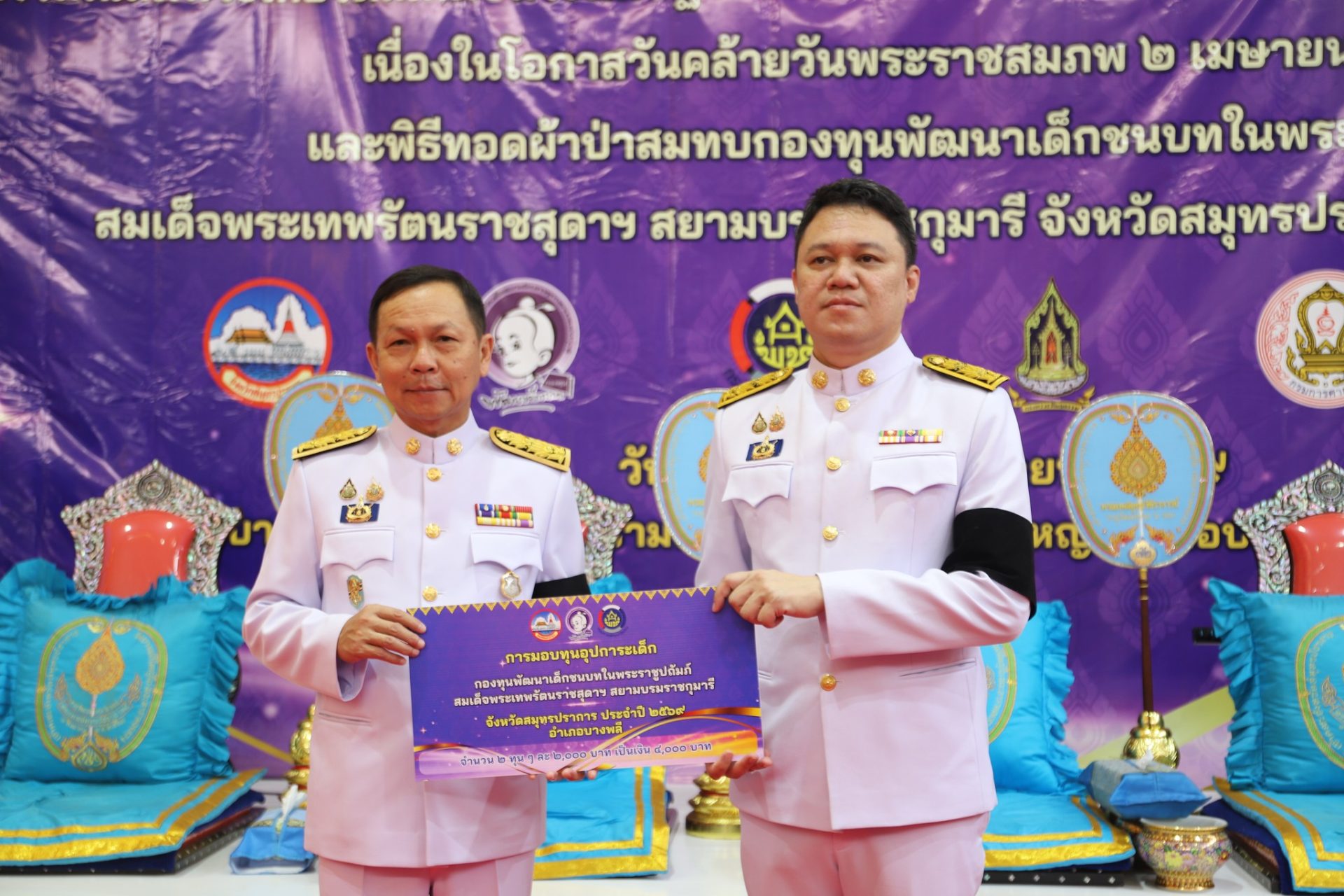 สำนักงานพัฒนาชุมชนจังหวัดสมุทรปราการ จัดพิธีทอดผ้าป่าสมทบกองทุนพัฒนาเด็กชนบท ในพระราชูปถัมภ์สมเด็จพระเทพรัตนราชสุดาฯ สยามบรมราชกุมารี จังหวัดสมุทรปราการ เพื่อจัดหาทุนในการช่วยเหลือเด็กด้อยโอกาส