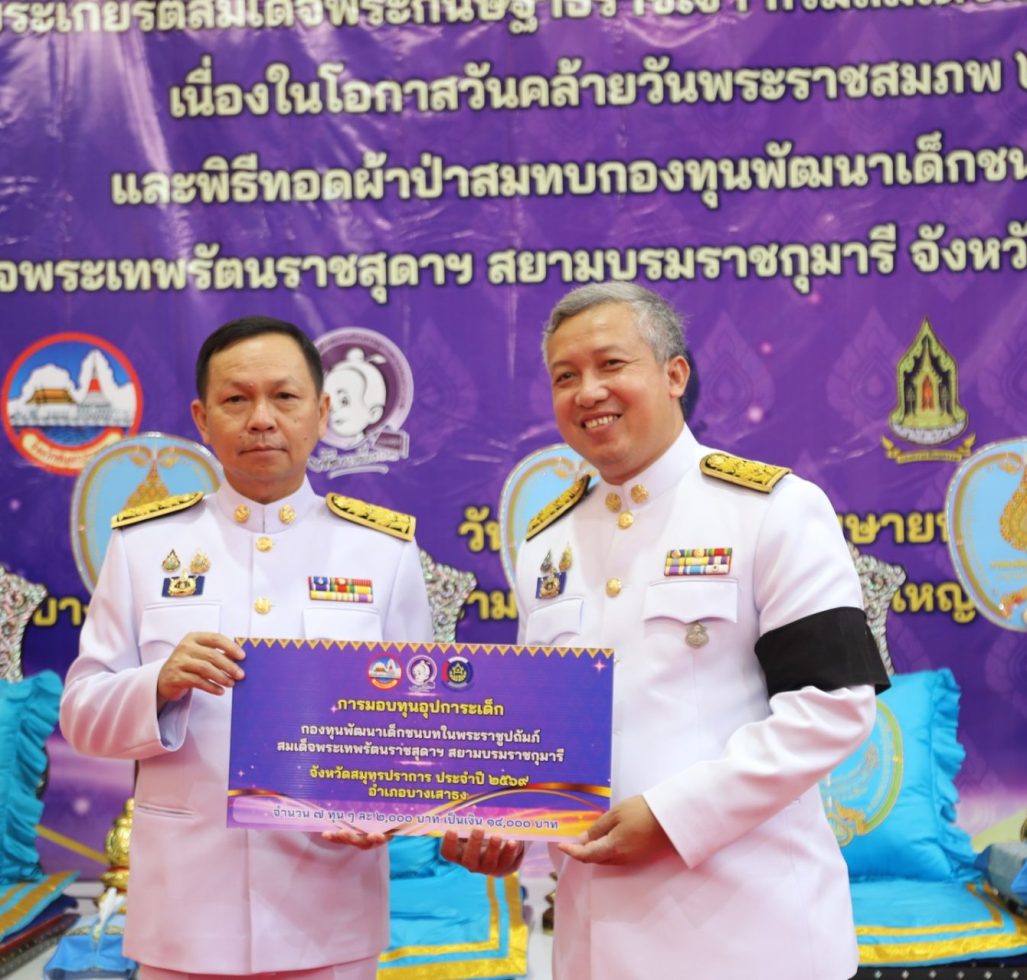 Published Inสำนักงานพัฒนาชุมชนจังหวัดสมุทรปราการ จัดพิธีทอดผ้าป่าสมทบกองทุนพัฒนาเด็กชนบท ในพระราชูปถัมภ์สมเด็จพระเทพรัตนราชสุดาฯ สยามบรมราชกุมารี จังหวัดสมุทรปราการ เพื่อจัดหาทุนในการช่วยเหลือเด็กด้อยโอกาส